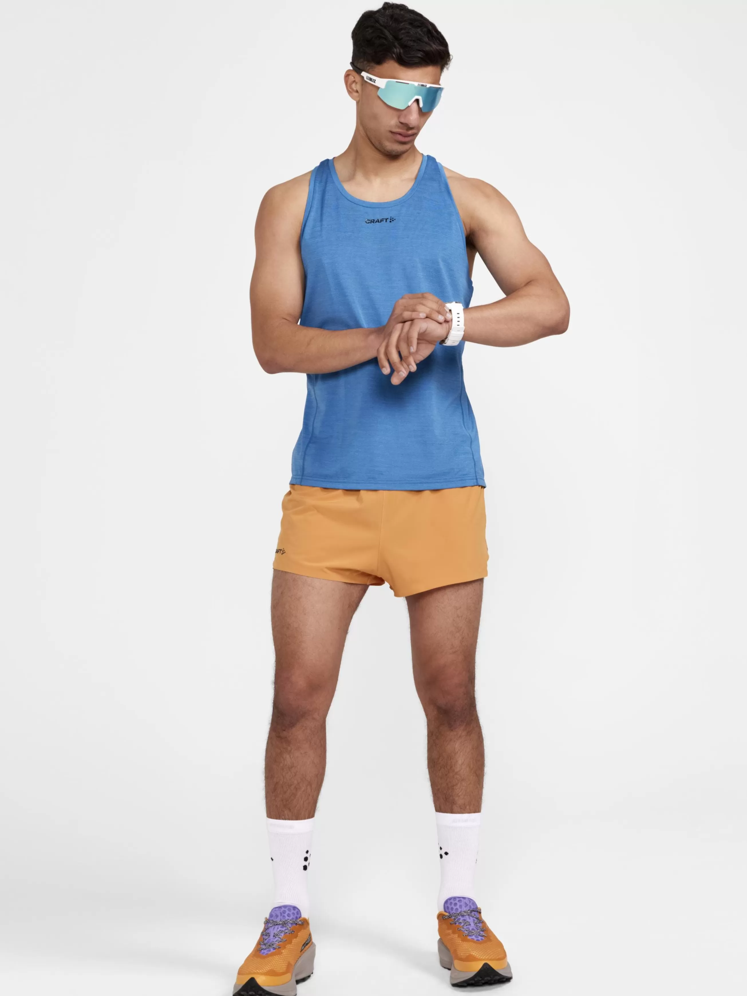 **Model wearing BLACK MELANGE and WOODS-MELANGE is 6’2″ and is wearing a size medium.**Model wearing SAREK-MELANGE is 5’11” and is wearing a size medium.When it comes to keeping cool and easy, a training tank that feels like nothing, but definitely does something is in order. The ADV Charge Melange Tank is just this. Made of soft polyester with mesh details this tank is barely noticeable but for its ability to keep you perfectly dry. Add to this Craft’s signature clean style and optimal fit and the ADV Charge Melange Tank clearly becomes an essential piece of warm weather training gear.