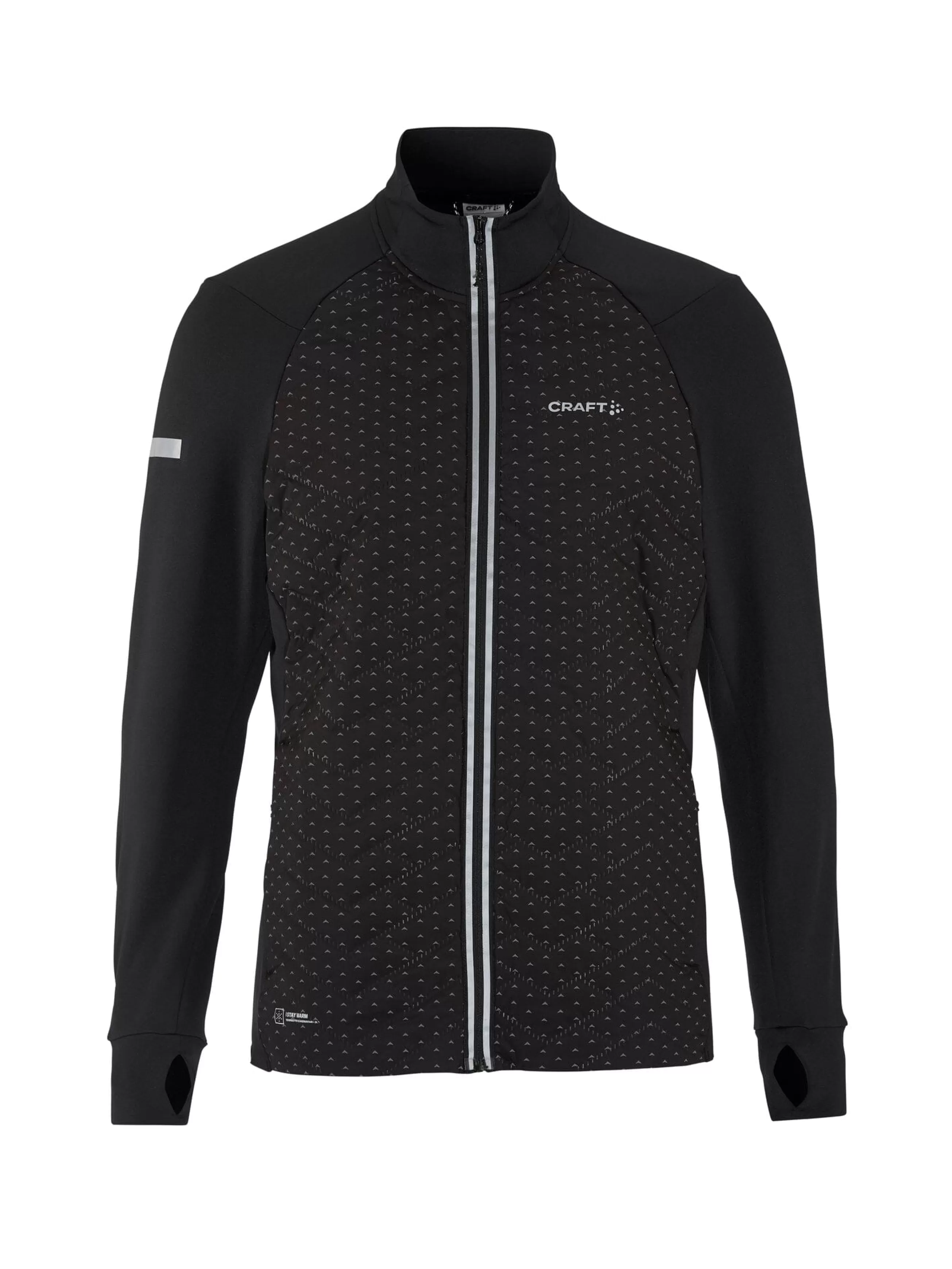 Presenting the Craft Sportswear Men’s ADV SubZ Lumen Jacket 4. Designed with an active runner in mind, it features a Ventair wind-protective front body that has light padding and a reflective print. Sleeves and the back body made from brushed recycled polyester jersey ensure optimal warmth and comfort. It comes with a thumb grip at the sleeve endings for warmth and added hand protection. The jacket is regular fit with a taped bottom hem. Reflective print on the sleeves and a Craft logo at the chest ensure high visibility.